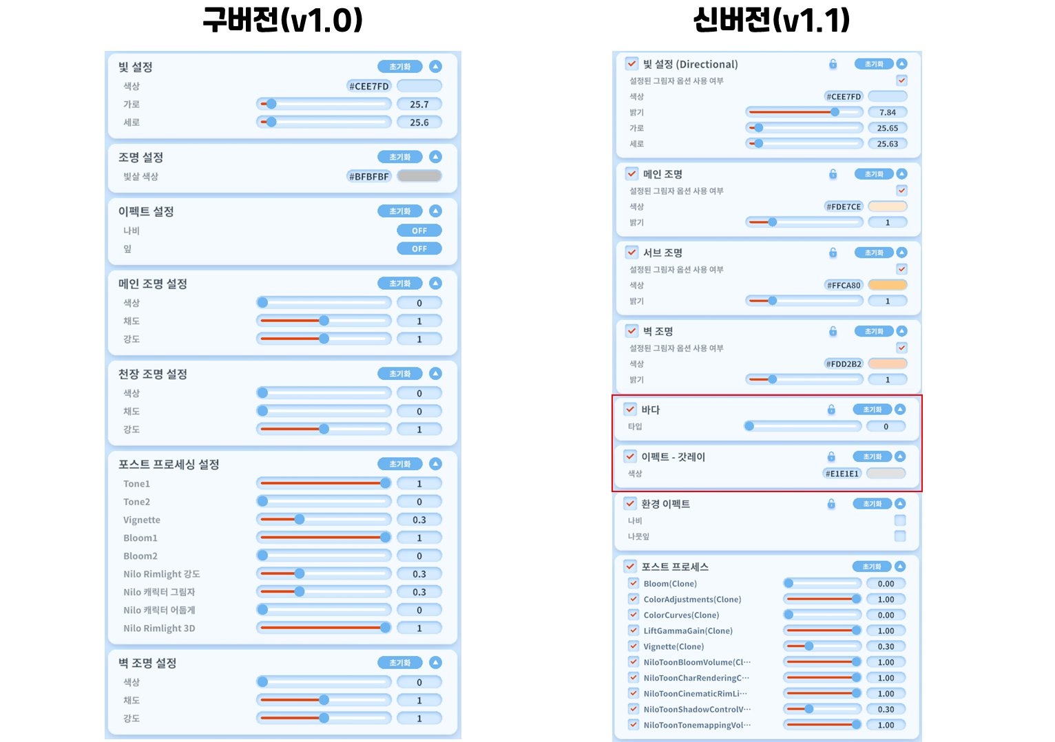 - 닐로툰 캐릭터 밝기 조절 포스트 프로세싱 추가