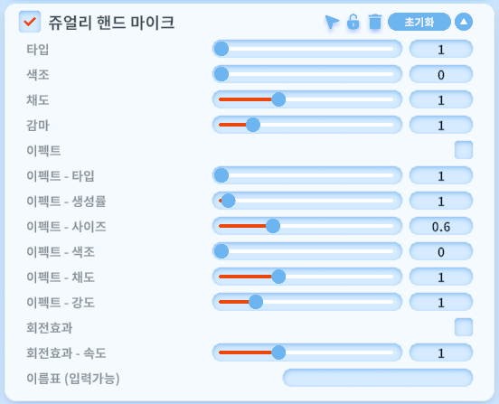 '회전효과'를 켜면 마이크 중앙의 보석이 움직입니다!