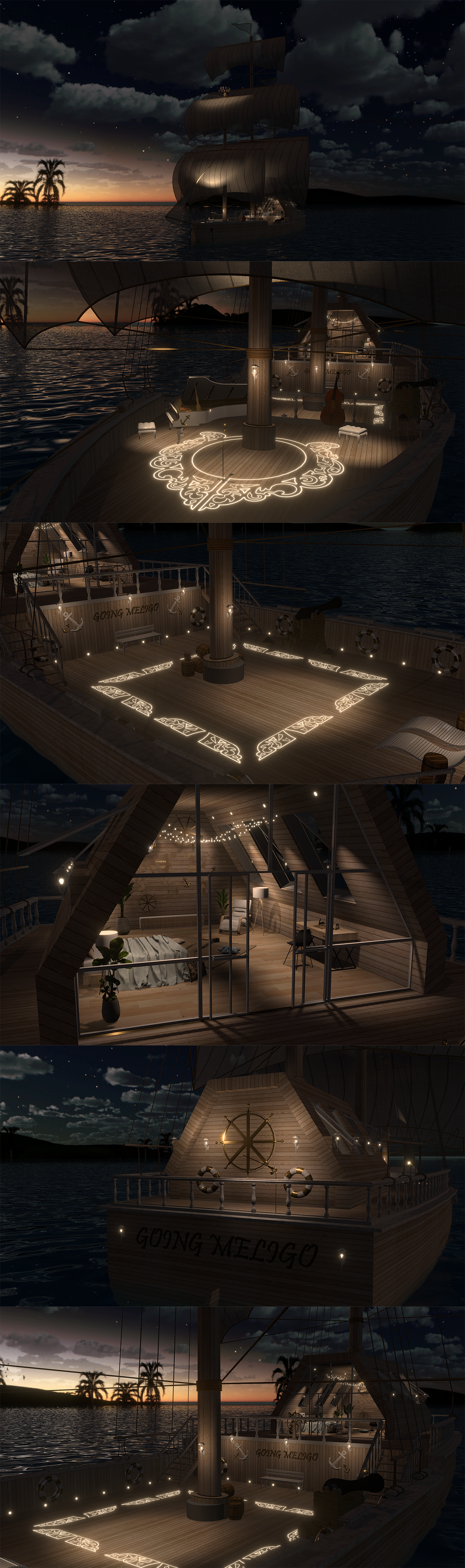 바다에 떠있는 해적선 컨셉의 배경입니다.