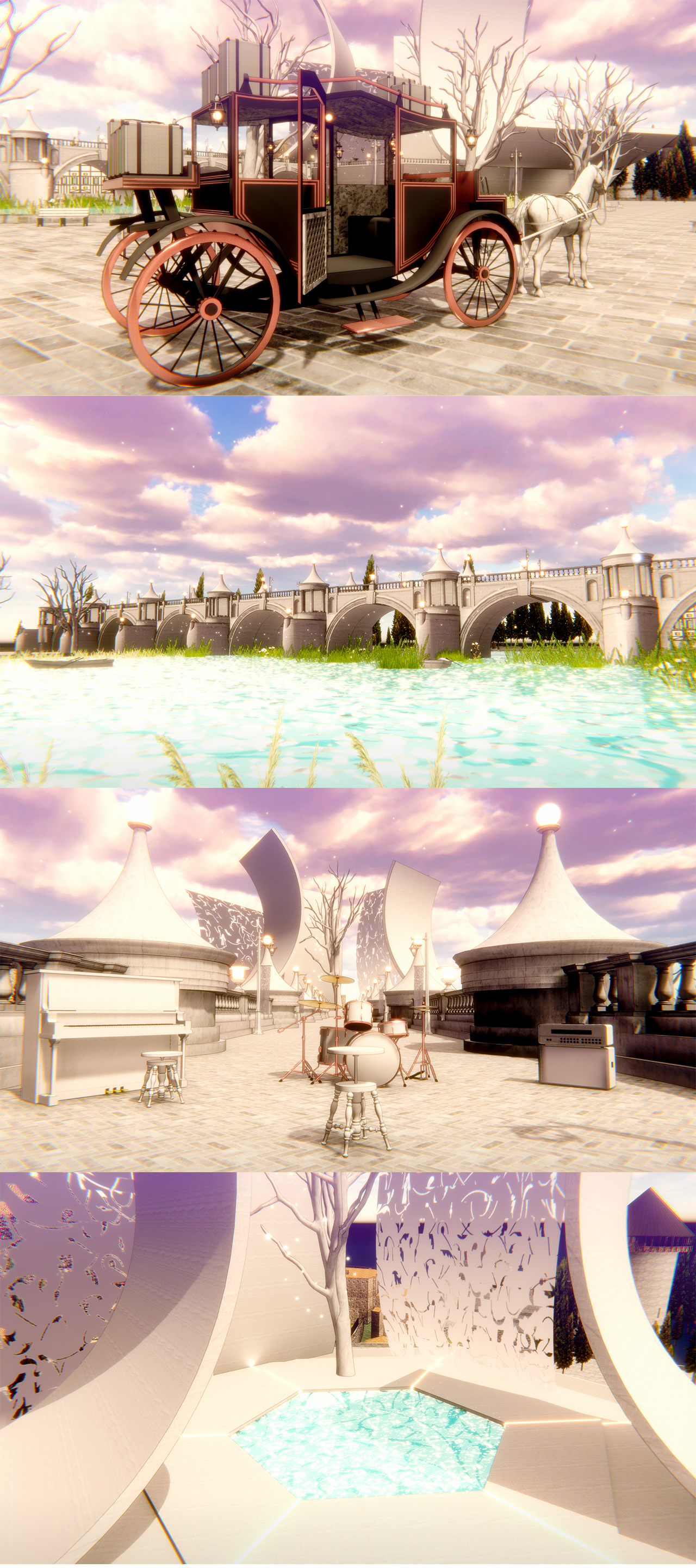 마차, 무대, 연못 위의 다리, 중앙의 큰 나무와 구조물 등 다양한 스팟 장소가 존재합니다.
