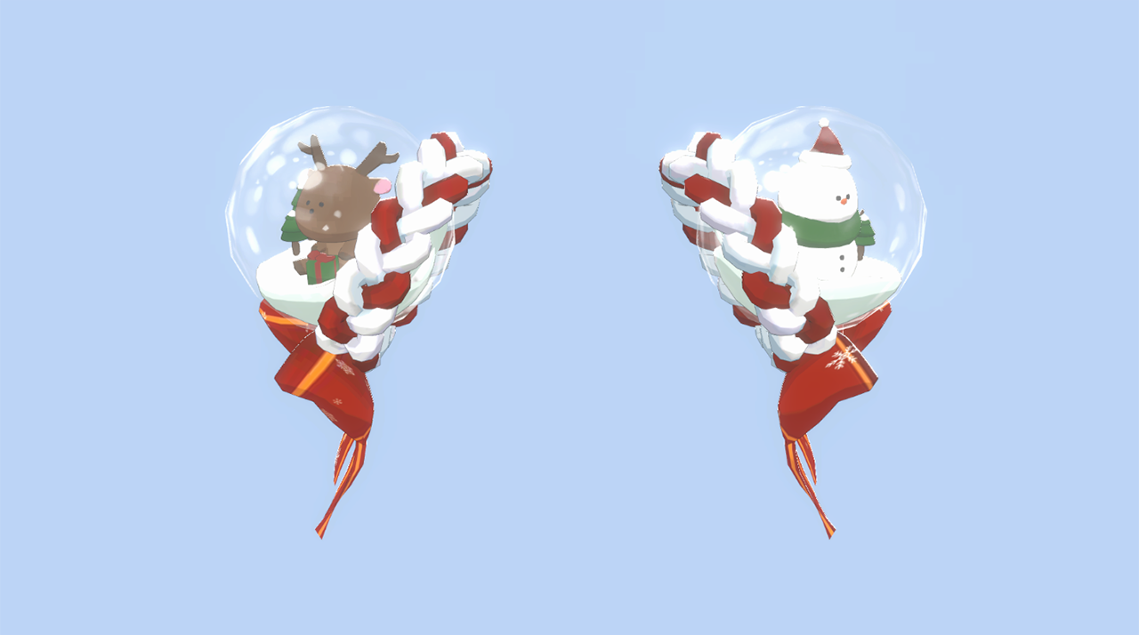루돌프와 눈사람이 들어가있으며, 착용 시 눈 이펙트가 함께 재생됩니다.