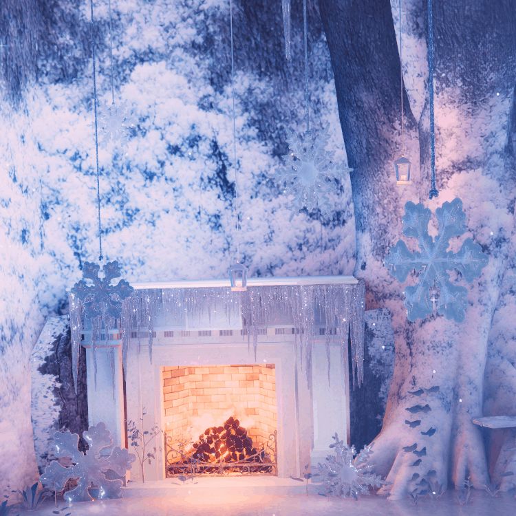 다양한 스팟이 있는 차갑지만 따뜻하고 안락한 느낌이 나는 동화 같은 느낌의 실내 배경입니다.