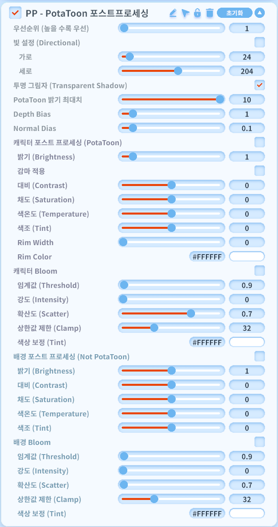 Potatoon(포타툰)을 사용 중인 아바타의 포스트 프로세스를 조절 할 수 있는 기능 프랍입니다.