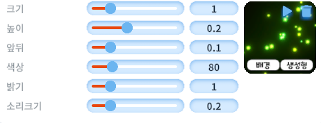 생성되는 위치, 크기, 밝기, 소리크기 조절이 가능합니다.