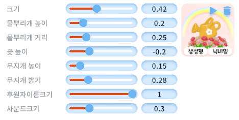세팅에 따라 꽃밭을 만들거나, 머리 위에 꽃이 피게 하는 연출로 세팅이 가능합니다.